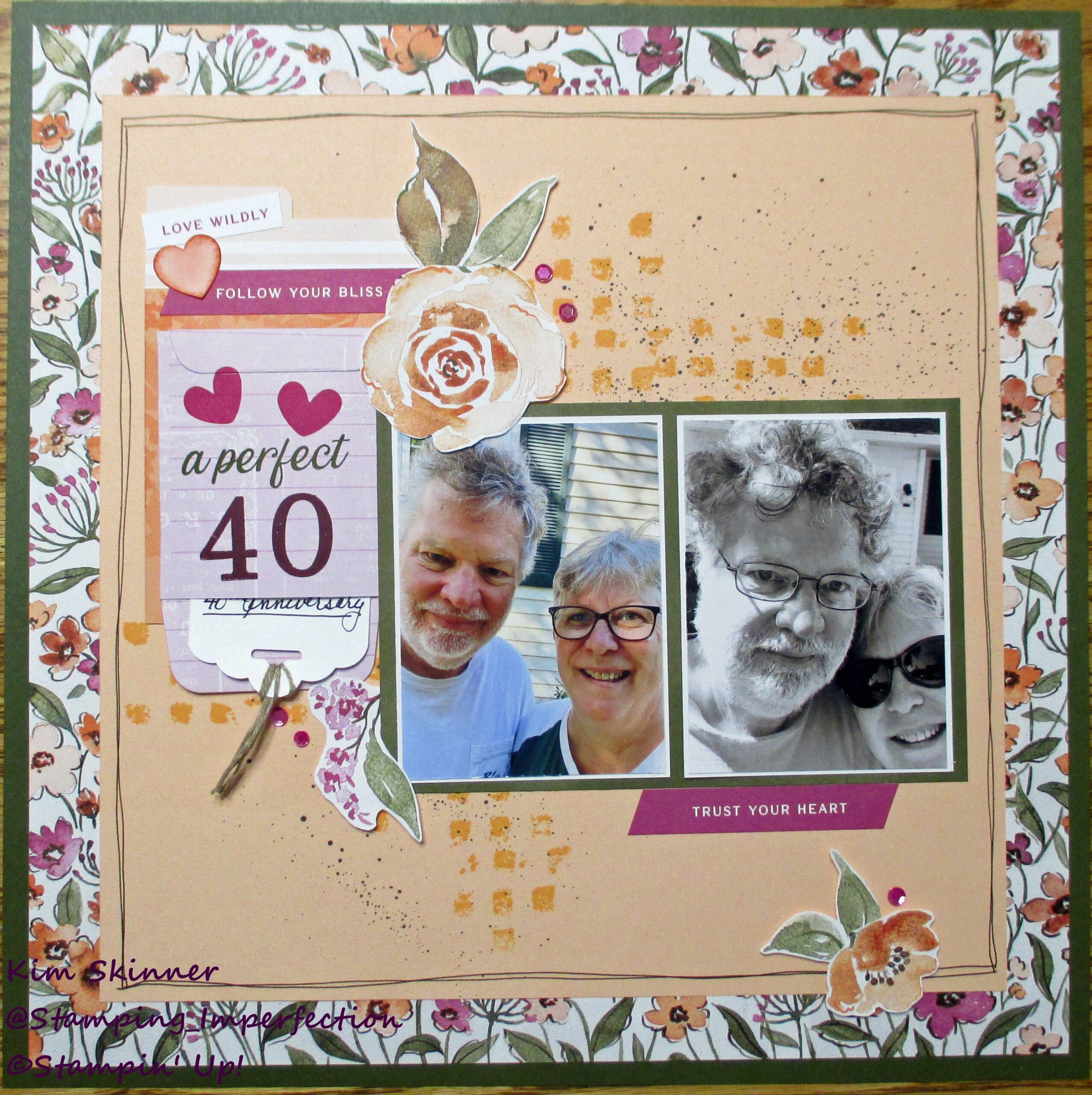 My husband and I are celebrating our 40th Anniversary this October. I decided to use this sketch to start the celebration. I snapped a new photo of us and one from about 5 years ago to use for the layout. I love us with gray hair. I think it speaks to our long and wonderful story together.