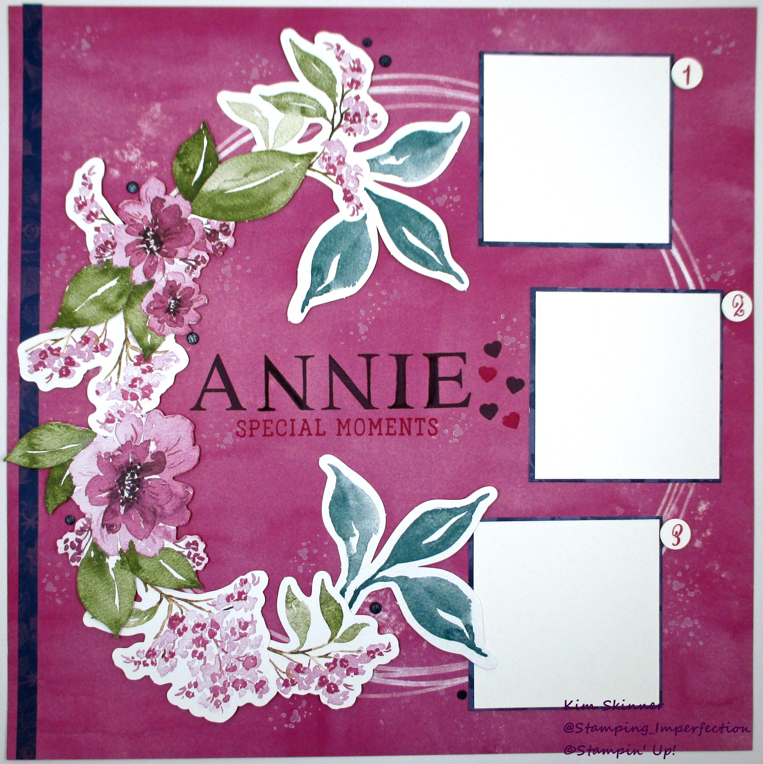 The Annie title is from another old Stampin’ Up! alpha set, while the Special Moments subtitle is from the recently retired Storybook Life stamp set from Stampin’ Up! I am absolutely loving the stamp sets that coordinate with the scrapbook workshop kits. I find myself pulling them out over and over again with my newer kits as well. I’m getting my money’s worth from these stamp sets!