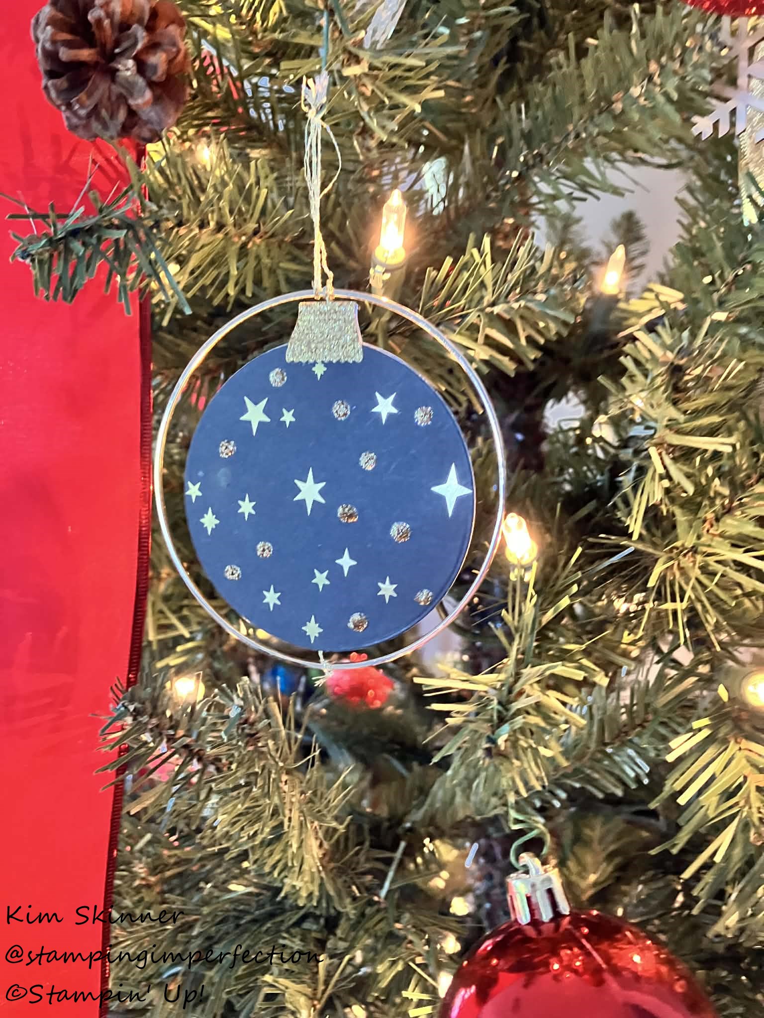 I used the Large Gold Hoops and the DSP from the Modern Christmas suite. I also added some dots of the Gold Glitter Glue. I still have 6 of these rings left to make more ornaments!